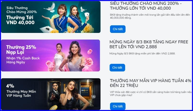BK8 cung cấp nhiều ưu đãi hấp dẫn cho hội viên mới và cũ.