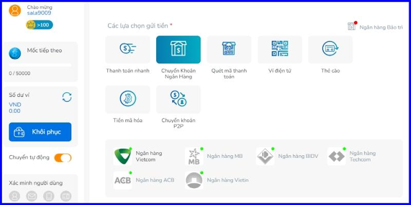 Để bắt đầu cá cược, người chơi cần nạp tiền vào tài khoản. BK8 hỗ trợ nhiều phương thức nạp tiện lợi và nhanh chóng.
